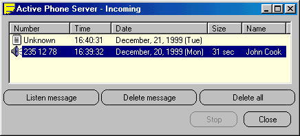 Incoming window shows who called you. You can listen answering machine messages here.