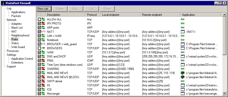 When checkbox at the left side of rule list is enabled - the rule is active, and will be used while processing network packets. Otherwise, the rule is turned off, and is completely ignored.