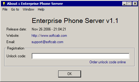 This window shows information about program version and release date. Also, you can visit program page, as well as send us email. Registration