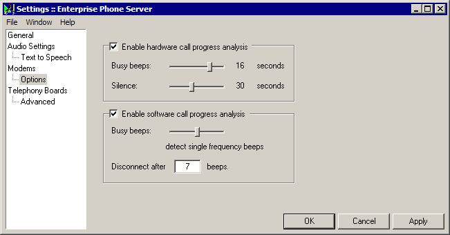 Disconnect after _ beeps - disconnect the call after specified number of beeps is detected.